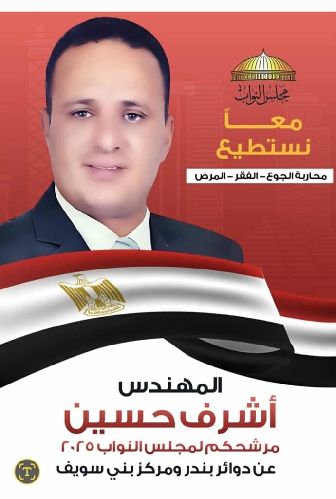مهندس أشرف حسين هو أحد المرشحين البارزين في انتخابات مجلس النواب 2025 فردي مستقل عن دائرة بندر ومركز بني سويف، والتي تُعد من أكثر الدوائر تنافسًا في المحافظة. يخوض أشرف حسين الانتخابات ، ويُعرف بتاريخه المهني المتميز في مجال الهندسة والإنشاءات، فضلاً عن كونه رجل أعمال ناجح.