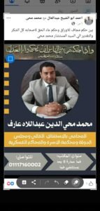 تواصل مباشر وسريع وللتواصل مع الأستاذ محمد محي الدين عبداللاه عارف، يمكن الاتصال على: 📞 01117160002